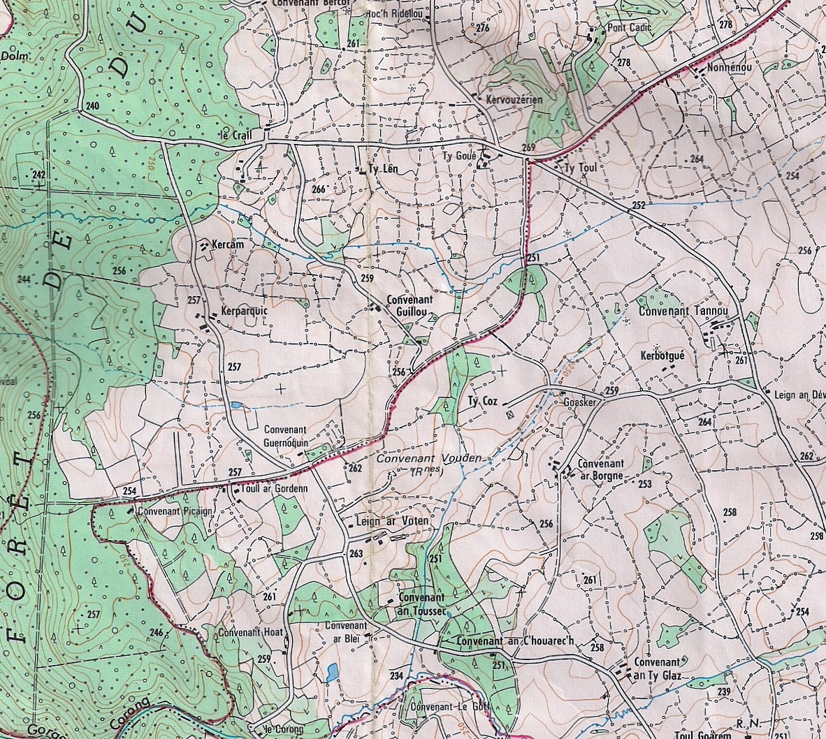 (Carte IGN 0717est-Maël-Carhaix-1/25 000°) |