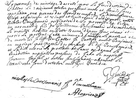 mariage par paroles des présents, le dit COURSONNOIS