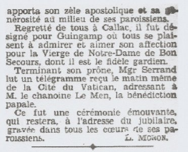 Le curé-doyen de Callac, comme on l'appelait à cette époque avant la